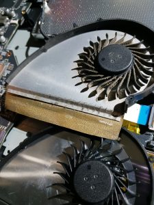 反対側のファンも交換。精密ドライバーさえあれば簡単にできます。